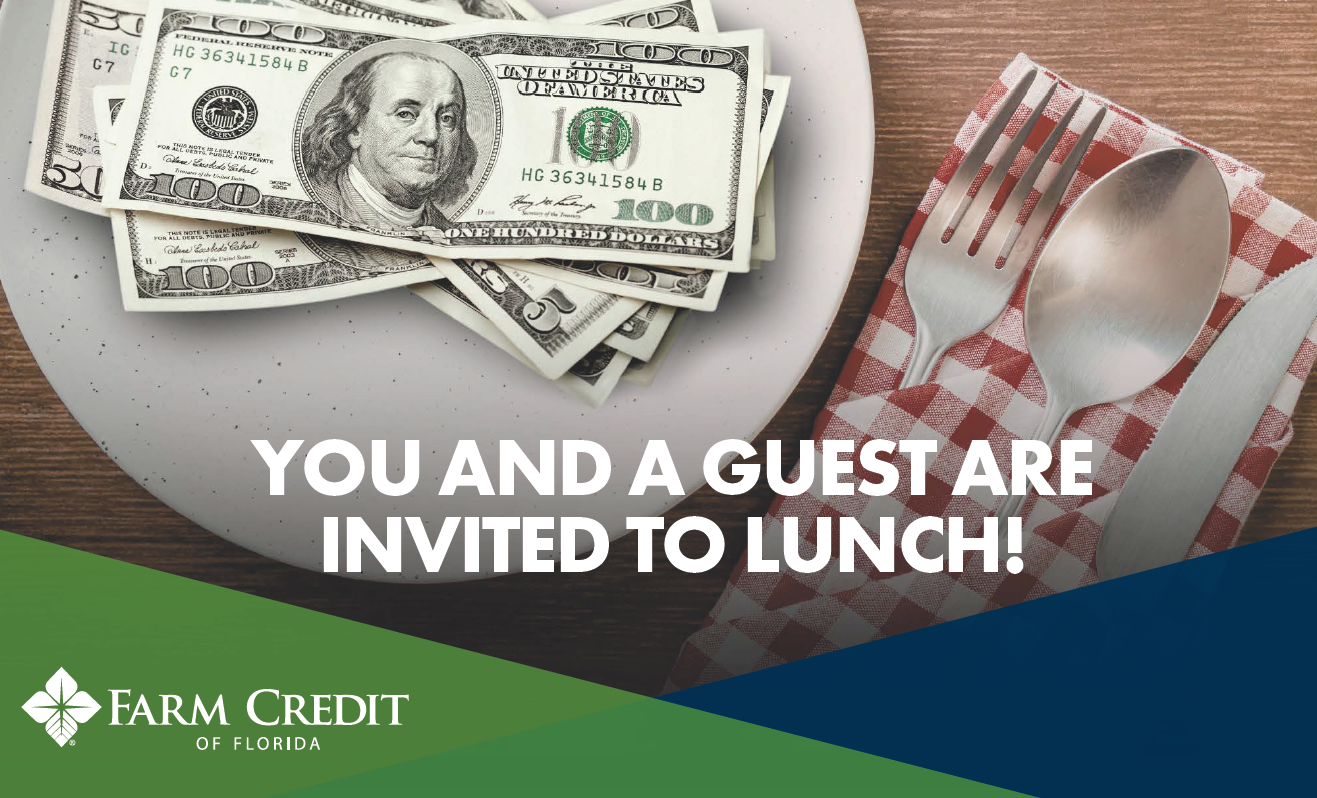 We are excited to celebrate an important milestone with the people who make it possible: our members. As a thank you, Farm Credit of Florida members are invited to join us for a complimentary lunch for themselves and one guest as we celebrate our $15 million patronage return at locations across Florida.